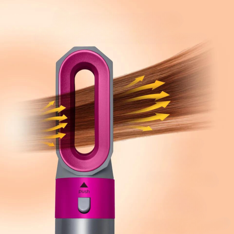 Z naszym urządzeniem, wyposażonym w zestaw wymiennych końcówek, możesz błyskawicznie przekształcić suszenie w stylizację. Bez potrzeby sięgania po różne urządzenia, wystarczy jedno kliknięcie, by zmienić końcówkę i stworzyć upragnioną fryzurę. Szybko i efektywnie suszy włosy, przygotowując je do dalszej stylizacji. Zaprojektowana tak, aby minimalizować uszkodzenia termiczne. Idealna do wygładzania włosów i nadania im jedwabistej gładkości z każdym pociągnięciem. Doskonale sprawdza się w eliminowaniu puszenia i zapewnieniu długotrwałego efektu prostych włosów. Tworzenie perfekcyjnych loków lub naturalnie wyglądających fal również nigdy nie było łatwiejsze.